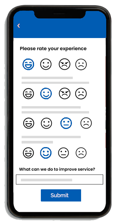 An automatic service that requests the service user to rate the services they have just received, options for a monthly report on your staff's service quality.